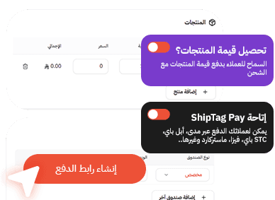 أنشئ رابط دفع وابدأ إدارة الطلبات والشحن بسهولة، بدون متجر إلكتروني وبدون تعقيد تقني.