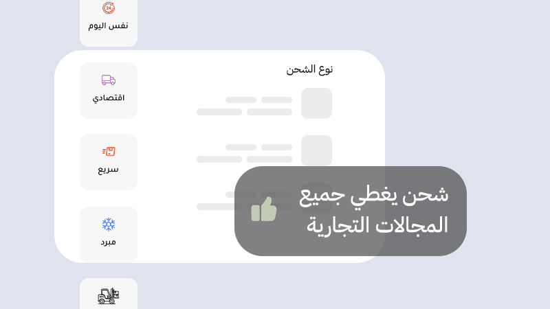 شحن مبرد، نفس اليوم، اقتصادي، سريع، وثقيل، حدد نوع الخدمة المناسبة لكل منتج وعميل.